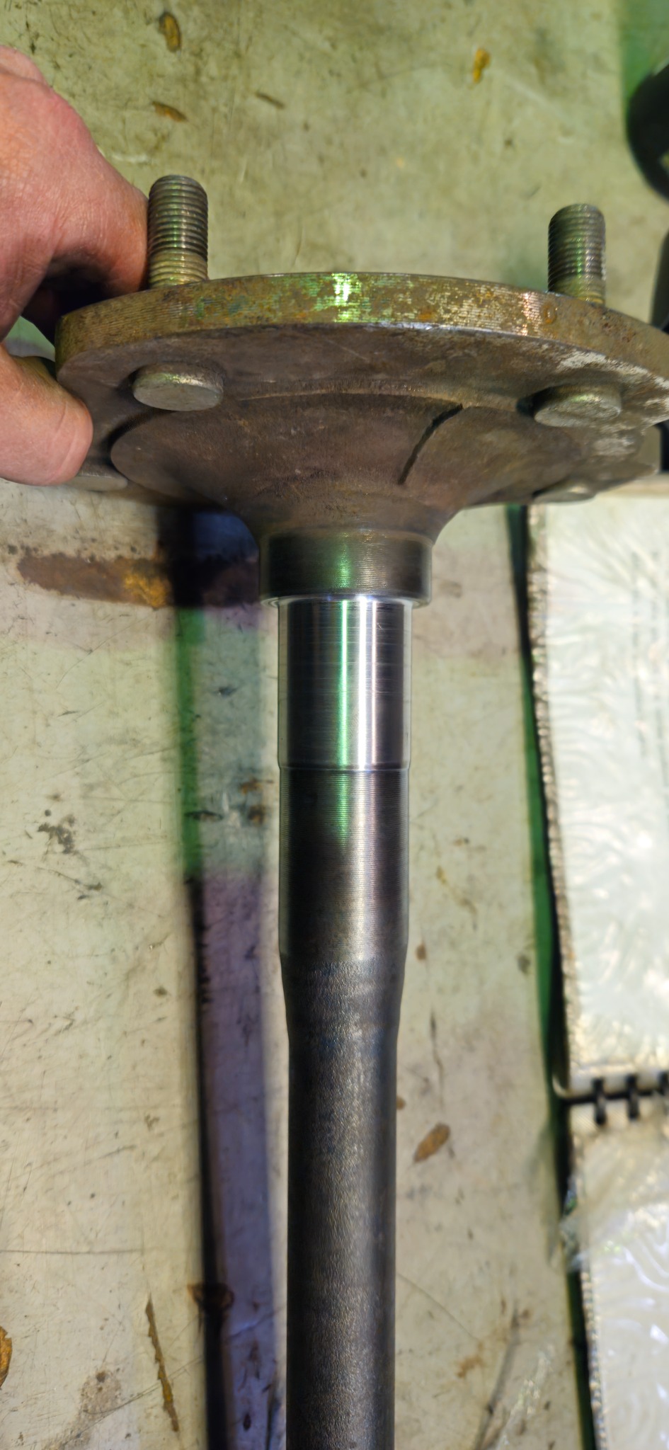 Cut the old bearing off, skimmed the bearing diameter, built up and remachined the bearing diameter. Didn't remember to take photos of the worn axle.