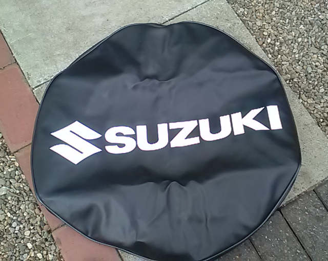 My OEM Suzuki "leather" spare wheel cover turned up this morning. Part 99000-990YB-699 if anyone is interested. Even though it's Japanese plastic leather, it's very well made, it even has a one way trap to let water out the bottom which is a nice touch.