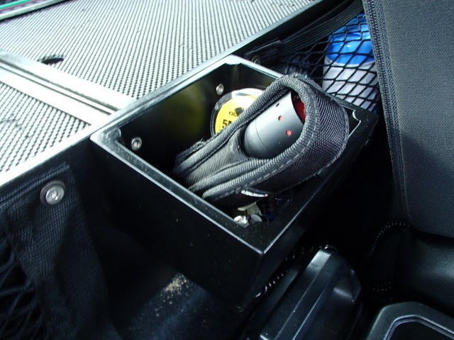 This is the storage box fitted between the seats to compensate for loss of the small box where the new instruments go.