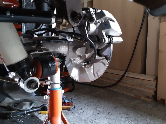 Halfs-hafts only do torque transfer with this setup. Wheel bearing and ABS sensor have been relocated.