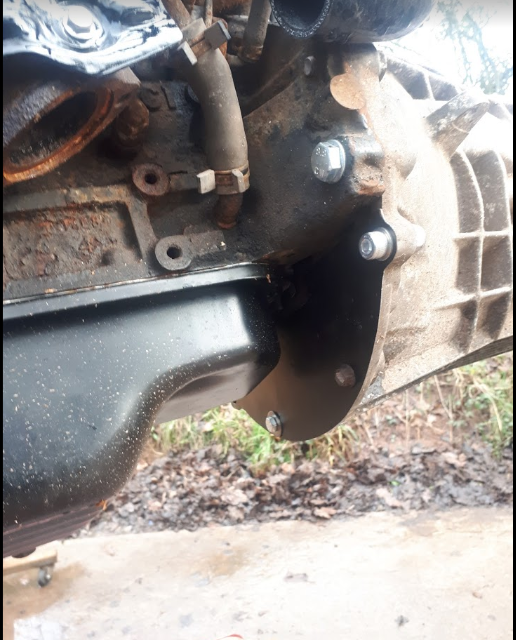 New sump and bellhousing closure plate. I'm hoping that the standard new sump will clear the steering rod at full bump but we'll see...