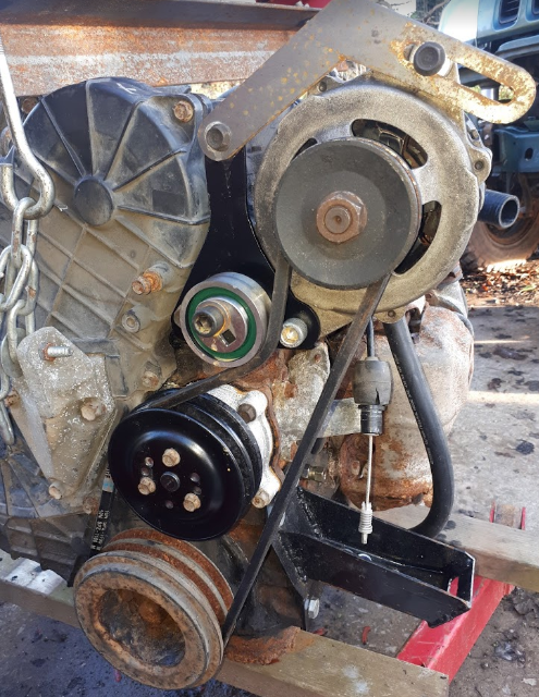 Relocated alternator, new water pump, painted pulley, sorted new belt and tensioner. Took a bit of messing about and buying the wrong sized belt but got there in the end. I'll remake the bracket in the future but it's functional for now.