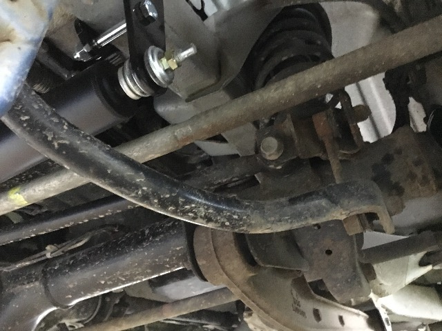 I just took any free play out of the damper rubber mounts by hand then locked it off with the lock nuts (second nut). It looks OK so long as you are not hitting the damper limit on full lock. As the damper moves you may hear a "squeezed liquid" type sound, its the oil in the damper moving around. Been for a drive yet, what do you think of it?