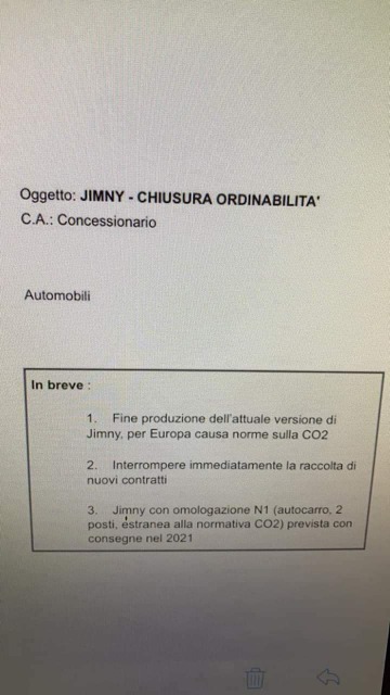 1. end of production of the current version of jimny, for Europe due to c02 regulations