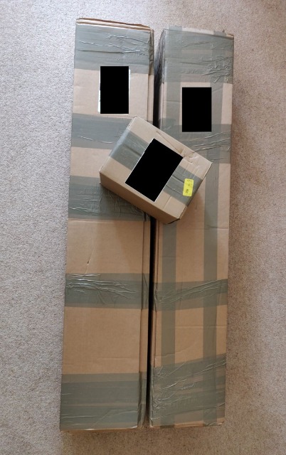 Supplied in three boxes, labelled left rail, right rail and fittings.