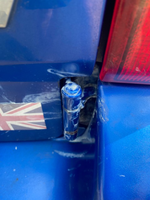 So I sprayed round the hinge with Lithium, then disconnected the strut and worked the door backwards and forwards, no change, so kept applying lithium to the hinge joint, still no difference.