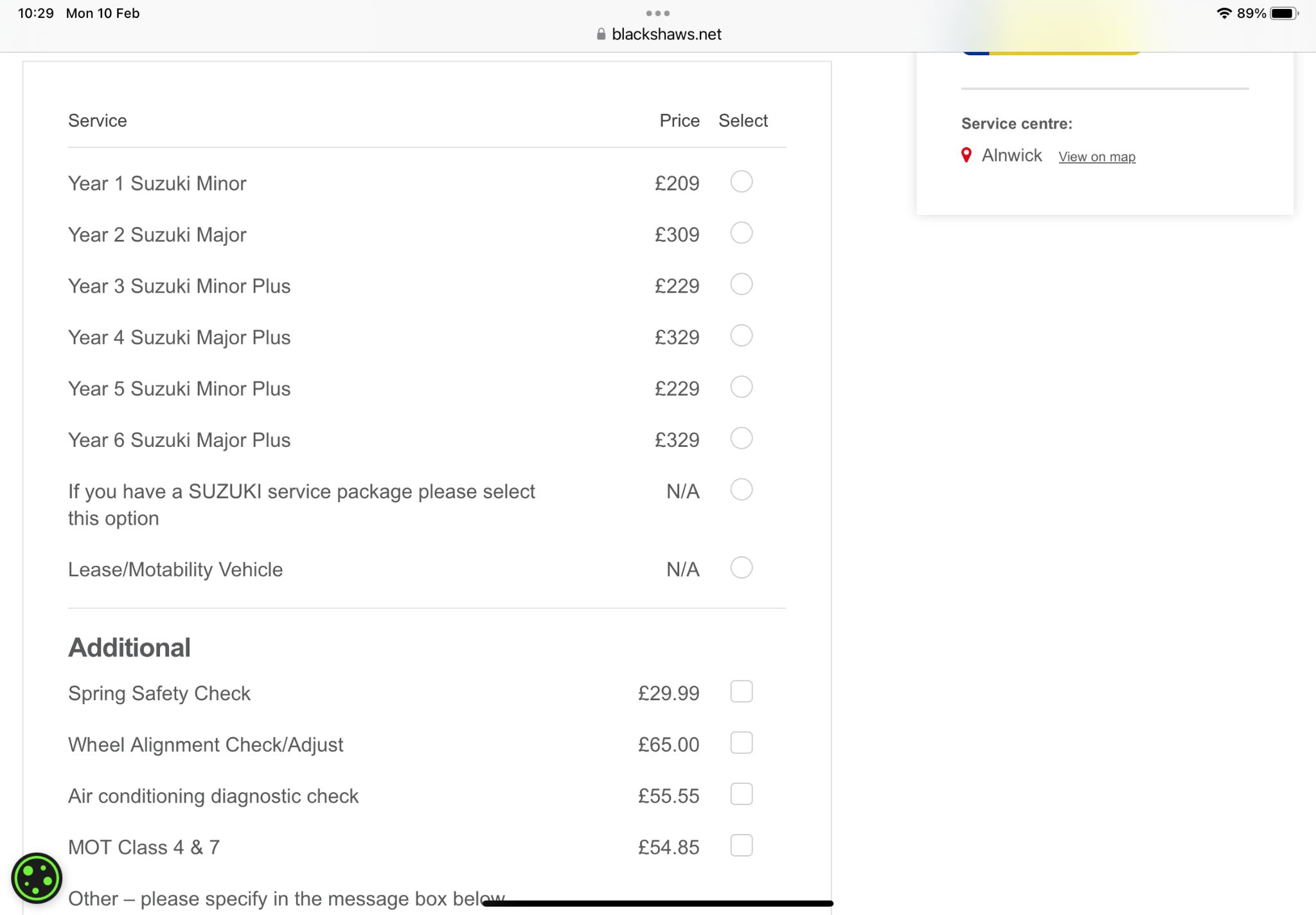 The car was 3.5 years old when I bought it (from the same garage) and the first service was the 4 year one, I didn’t need an mot so it was £329.
