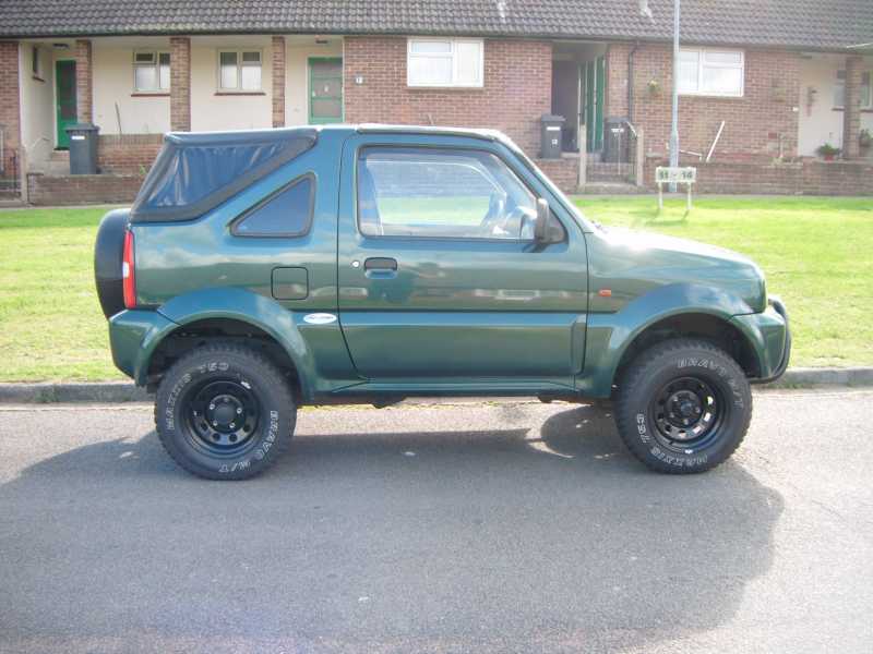 This is my Jimny with a 2" lift tyres are 205/75/15 M/Ts.