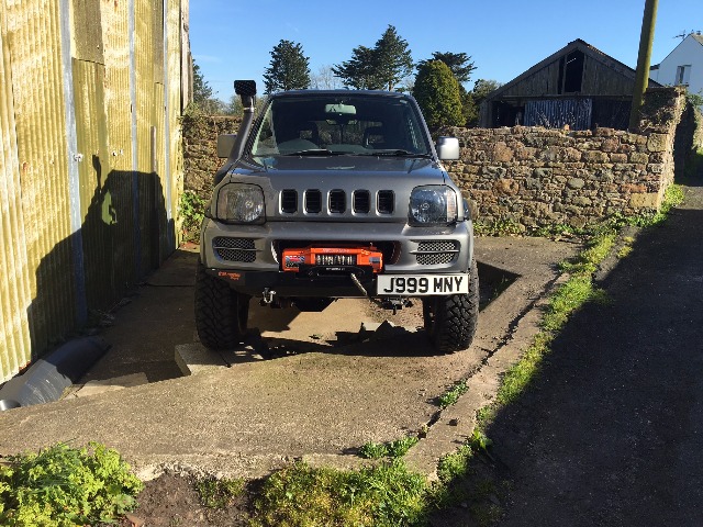 The hook on the winch is too big to fit into the jimnybits towing eyes so ive clamped it onto the original tow point underneath for now. I bought some D shackles, but they are either too small or way to big. Be handy for the tree strap or snatch block i suppose. Ive decided to put the cover on it when its parked up to keep prying eyes off it