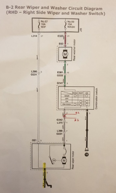 Once this mod is fitted to the wiring, to use you simply switch on the rear wiper, switch off for 10 seconds* and switch back on. You then have a 10 second intermittent wipe.