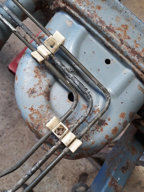 When I did my fuel & brake lines I had this idea that I could open them up and get the pipes out- they are too brittle. I ended up cutting the pipes into small sections and sliding them out one at a time (along the pipe, not across it). The clips did click over the new pipe though- mostly.