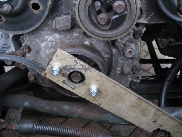 I suspect a previous owner had been driving through water- just look how corroded the pulley was. The flange on the bolt had rusted solid to the pulley, once the flange was off it lost its tension and there was nothing holding it so I undid it with my fingers.