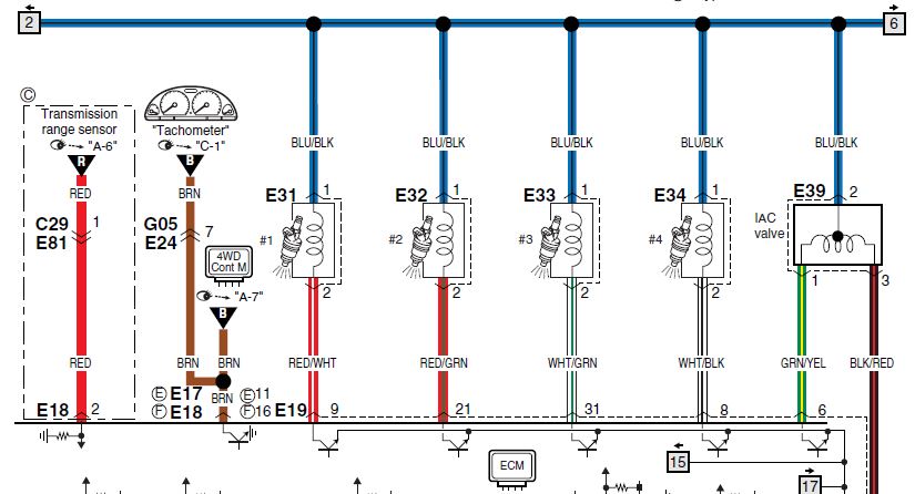 Ignition coils #1 & #4 are driven from the same output on the ECU, line A6 and use the same coil, with ignition coils #2 & #3 using output A19. I assume it uses a ‘wasted spark’ and fires two cylinders together.