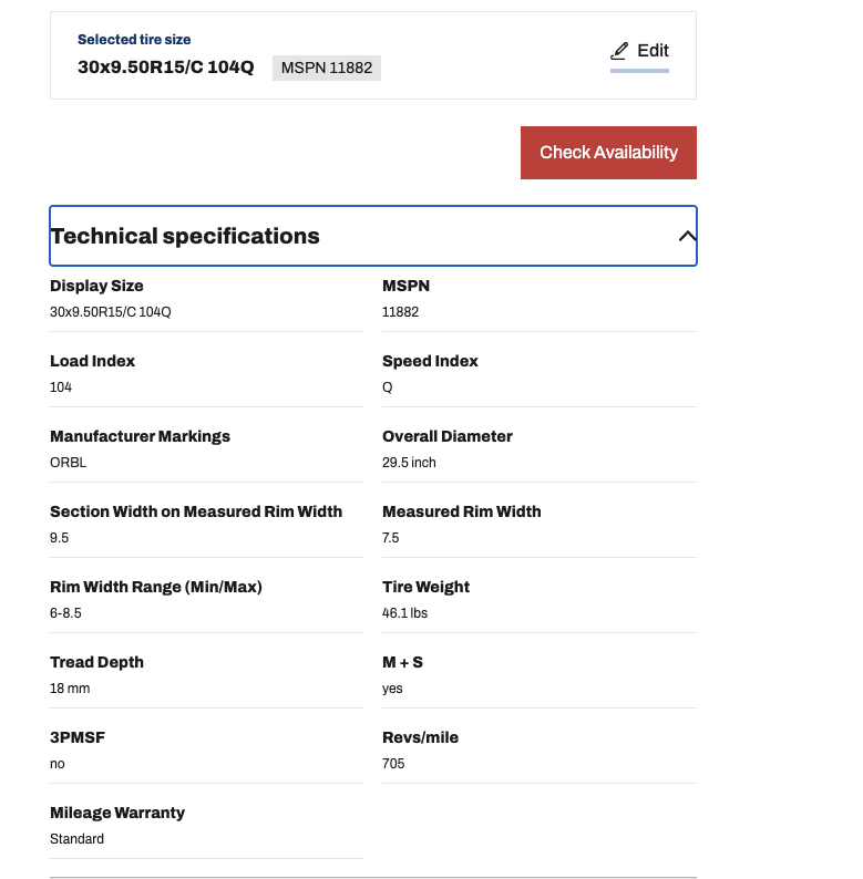 Or if you want a true 30 inch tyre a 245/75R16 is hardly any wider but comes in at 30.5"