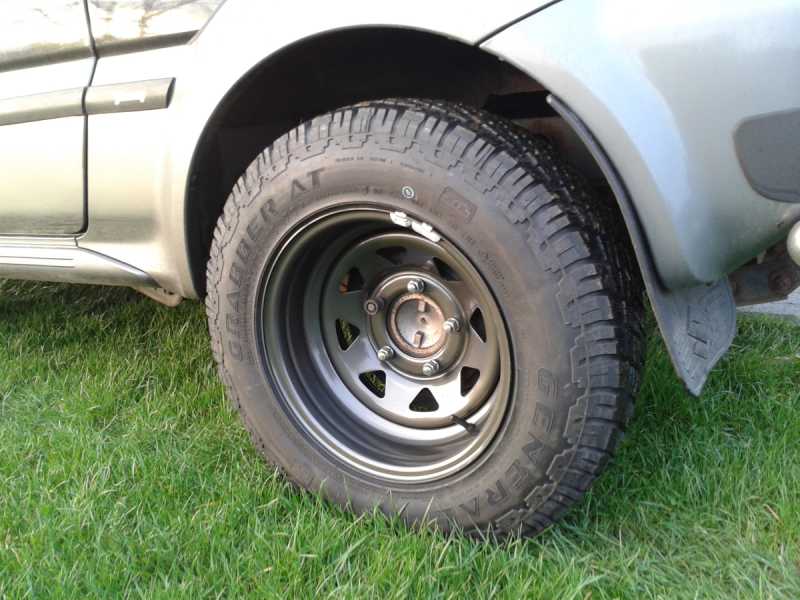 got two new General Grabber ATs fitted on Jumnybits -30 offset modulars fitted on the rear axle and put the old rears onto the front.