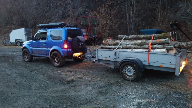this one has the exact braked weight of 1300kg so fits the jimny right on. Floor is 255cm x 145cm so it can take a sheet of plywood or drywall.