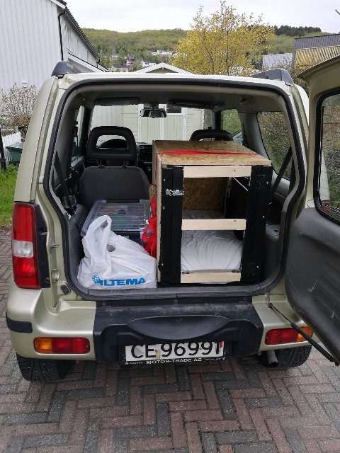 Enjoying the wild. My dog is going crazy cause of all the raindeer passing our camp, and he can' t run after them. The Jimny is fantastic as an overlander. Can fit everything me and my gf + dog needs. Next project will be a shelf and crate in the rear.