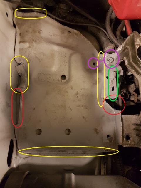 Purple marking are to show relocation of the bolt mount for the fuse box (only using 1 bolt now)
