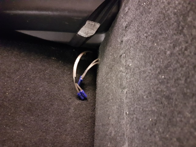 Subwoofer box is a sealed 36 liter (speaker spec for sound quality), and is pretty much a tight squeese between seat and door, not moving anywhere! 1 plug connection for easy removal.