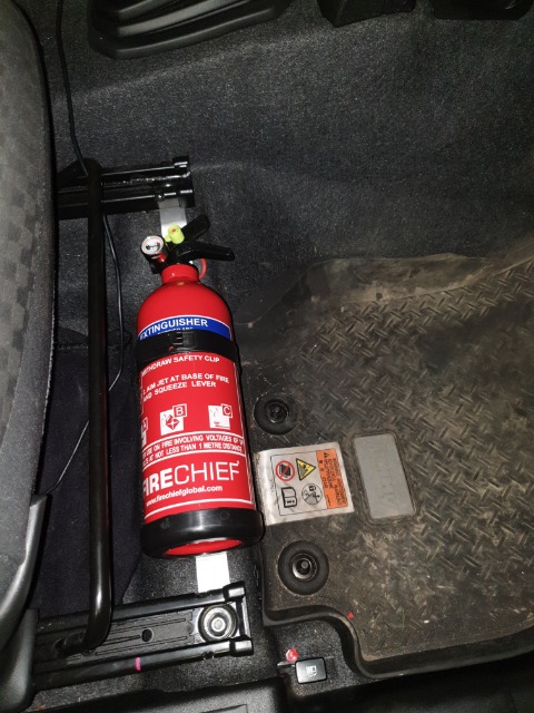 Their had been discussion of fire extinguishers on the FB group, i had been thinking of getting one for in the Jimny, but this spurred me on. I believe it should be accessible from the drivers seat for worst case scenario purposes.