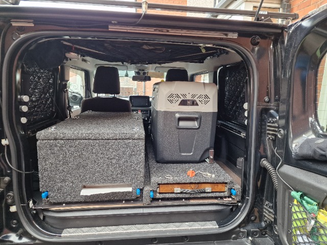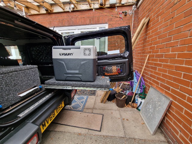 I have adapted the fridge slide a bit more and cut 22" off the length of the drawer to fit in the Jimny.