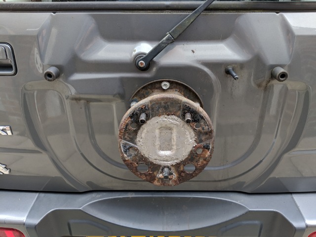 As you can see, someone had decided the spare wheel mount would look better in silver. They didn't do the most professional of jobs...