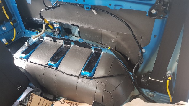 Next was the closed cell foam for stage 2. Seal from moisture and condensation build up, also to create a touch of in car sound softening for the stereo and finaly to create a de coupling for the stage 3 MLV layer.