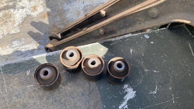 Getting the old bushes out could be a challenge, fortunately a friend pushed them out on his hydraulic press: