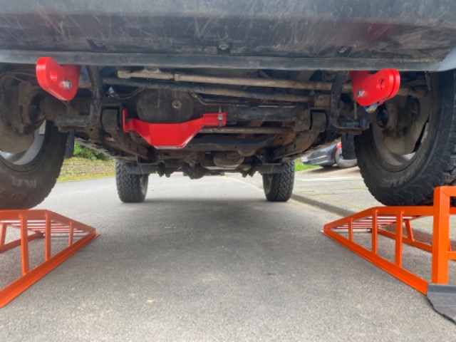 Fitted front recovery points and refitted the front diff protector after repainting.
