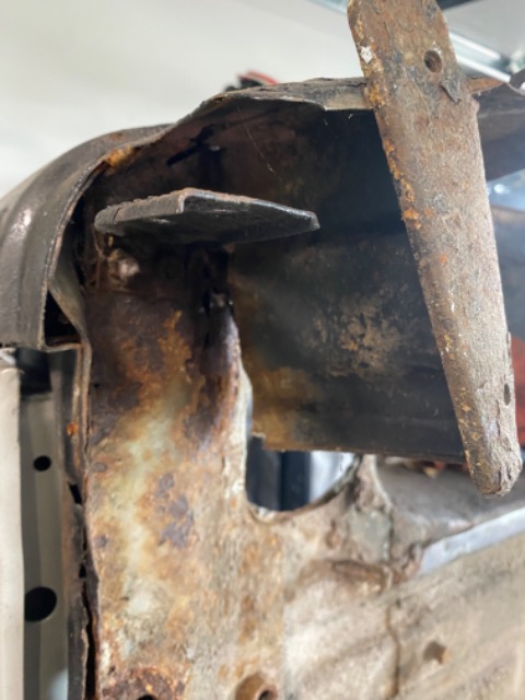 During the rebuild of our SJ, the restorers have put in new panels/metal into the rear wheel arch and floor pan area. As this is all new panels or new metal they have lost track of where one of the small panels should be fitted.