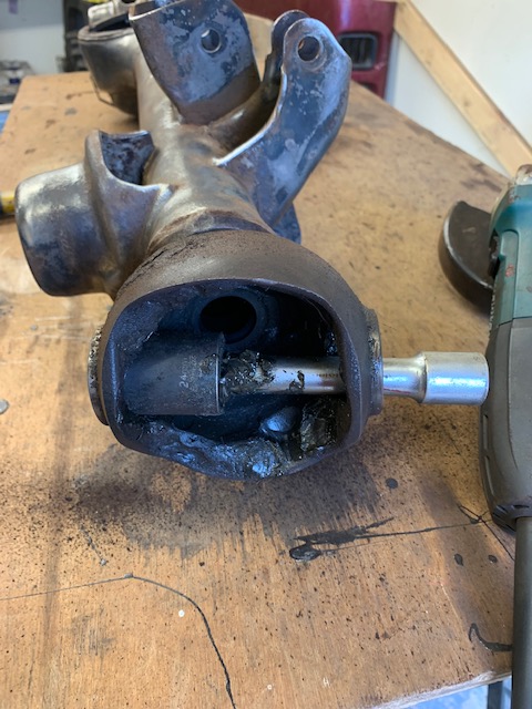 next is something I had made up . A drift to fit / remove kingpin bearings ..outer size is race size to seat ..inner taps it out . ( made for a motorcycle fork seal but diameter care the same. ) So no damage to bearing or socket set!