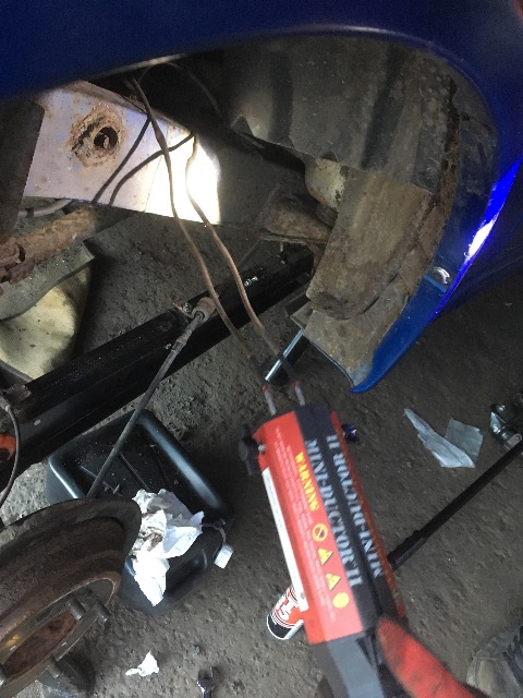 Had a little issue with the rear brake line joint which was seized up so had to make up another up but whist that was happening “mini me” decided to go on an imaginary adventure in the car and pumped the brakes leaving me with a puddle
