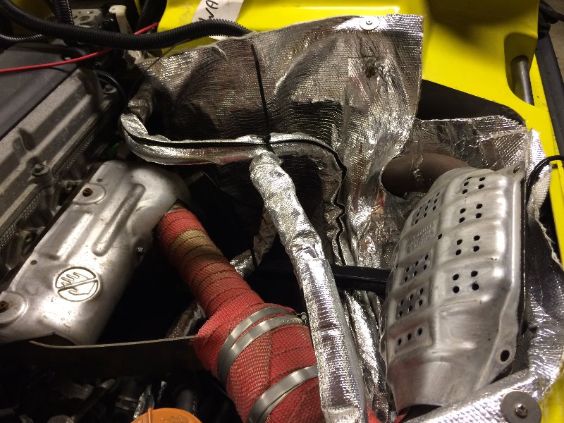 In additional to the above I have also fitted a 2nd electric fan to the remote air cooler, fitted additional heat resistant mats to protect pipes and wires etc and finally I have insulated the air conditioning pipes that run very close to the manifold.