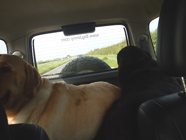 In hindsight, they need to be wearing harnesses securely tied in incase of an accident... they are big dogs to come flying forward at you!