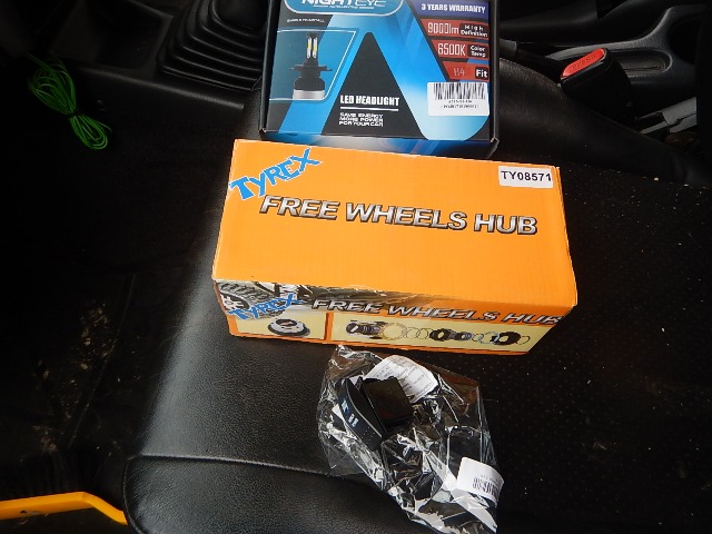 I'd ordered some manual free wheel hubs as I got a flashing 4x4 light in the recent snow we've had in Waleshire, so I didn't want to get stranded as I had in the blue one early in it's life! I had put a "Price Beat" into JimnyBits but they chose to ignore it as we've fallen out, so I bought them off "Raptor 4x4" on eBay as they were cheaper! I'd also got some super-bright LED headlight bulbs and a new switch for the dashboard, more on that further down...