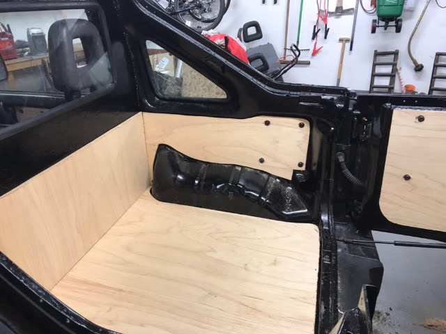 Test fit of a few panels made from 10mm Malaysian ply secured with existing holes, even the bolt heads were countersunk for flush fit.
