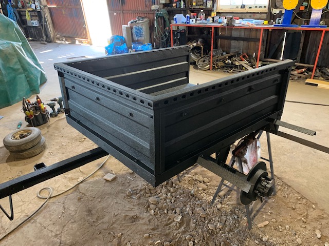 stripped off the wheels, mudguards and various reflectors and spent the morning going over it with the wire brush attachment on the grinder then some paint. My favourite combo of Buzzweld rust encapsulator and top coat of black Raptor. Got the trailer and most of the little bits done today before I heard the call of beer...