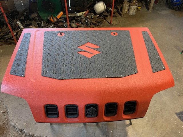 The thought then turned to venting the bonnet somehow. The big suzuki 'S' cut into the bonnet plate seemed the obvious choice. I know Keithy makes a nice set of bonnet vents, but these wouldnt work with my checkerplate covers.