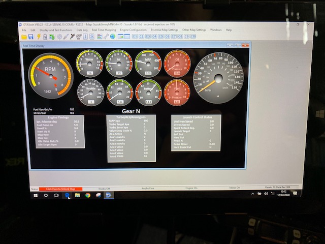 And this is the software. I bought a odd serial lead needed for the ecu setup, but it also gives you a sort of dashboard layout to view (mainly so I can see engine temp). This is an old windows tablet with a USB to serial adapter and runs the software brilliantly. Only problem is the gooseneck mount is wobbly and screen shiny/big. It'll do well to keep in glovebox for diagnosis if theres a problem and is my equivalent to the ODB reader now. I can also fiddle with what RPM the VVT starts at and a whole list of other stuff, though thats probably best left to Johnny's expertise.