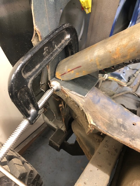 And the other end... the other spreader plate. The smaller diameter tube comes through the roof skins and will be plug welded into the main X brace which is bigger diameter and will be butt welded up to the spreader plate, with the smaller diameter tube inside, so nicely braced in a couple of ways... (The smaller tube will be holding the tree scrape bars that will surround the roof line like my old Blue Jimny had... to lean on trees and push them out of the way!
