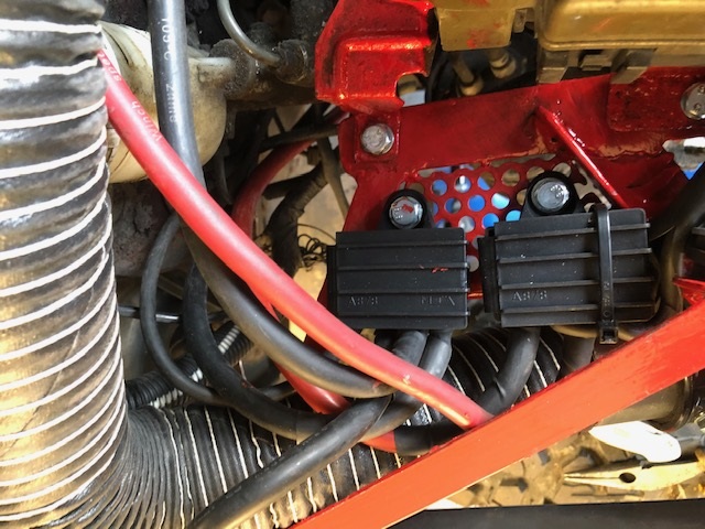 And then, having given the mounts a second coat of paint early in the afternoon, I bolted them in, crimped the rest of the cables and began connecting them up...