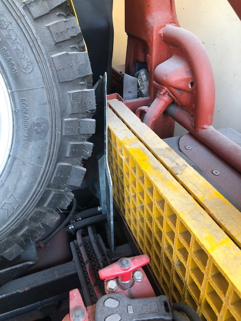 The 'kink' in the arm ends up here, above the tyre but enough out of the way that it won't foul on the tyre under articulation... That loop hole is used to pull the anchor back out of the ground if it digs in too well! :laugh: