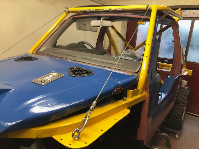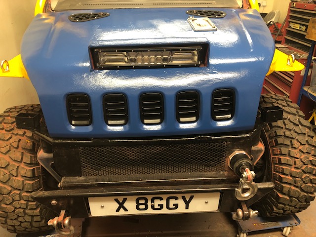 (Re-)Fitted the Pie-Pot*, the (Keithy-built) bonnet vents and the five inserts in the front, now that I'm as happy as I can be with the finish of the bonnet...Considering it's been cut and reshaped and a oval tube section welded into both sides to form a new edge, by a complete amateur... it doesn't look too bad!