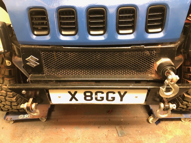 And to finish off the front... as I'd "de-badged" the middle bonnet grill insert, I put a small new Suzuki badge on the opposite side of the winch rope's donut fairlead to balance the front out