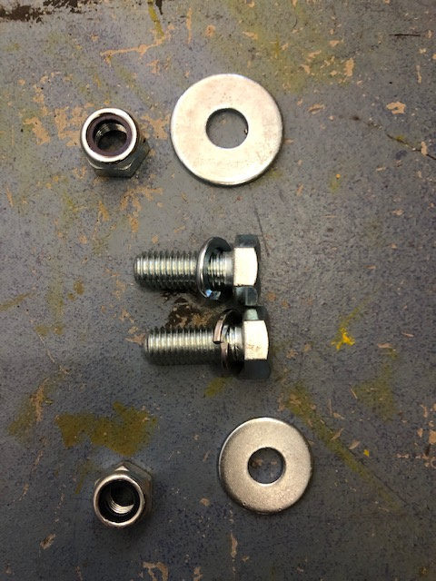 New fastenings all round... metric fine 12mm and 10mm nuts with oversize washers for the bodymounts either side under the (half) doors, and some new M12s to bolt the sidebars to the chassis brackets, with spring washers...
