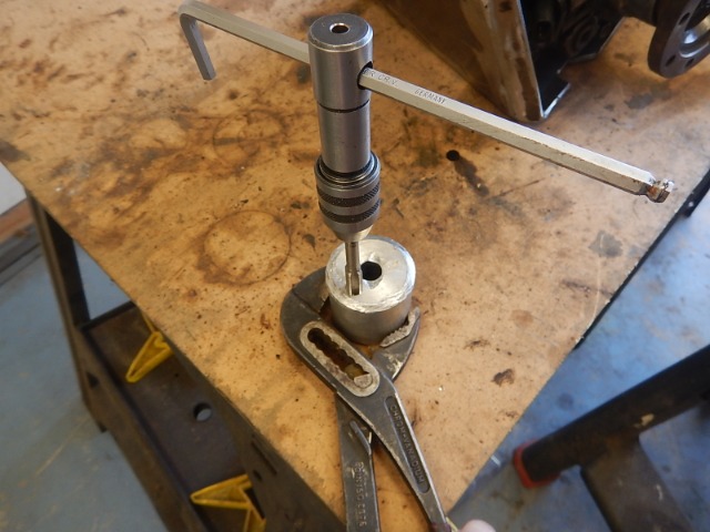 I experimented first in an old aluminium body lift spacer block (the same one that was used to beat the front bearings out!