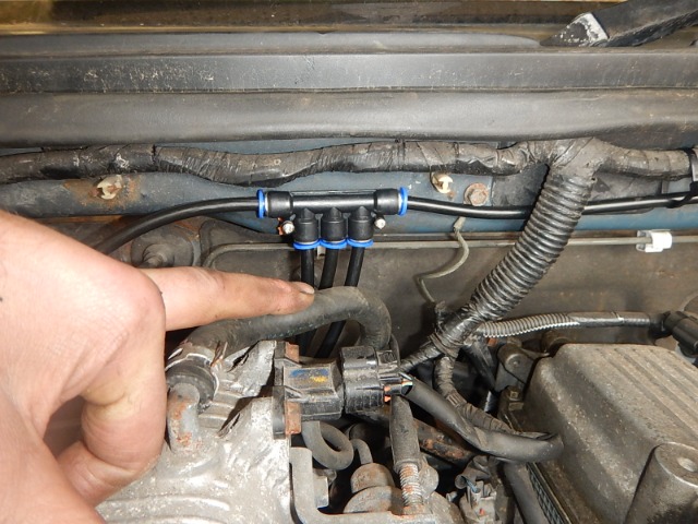 So the one on the left goes to the rear axle, the three pointing down go to the front axle, gearbox, and transfer box, and the one on the right will go to the highest position possible, in my case, usually up into the top of the snorkel's head