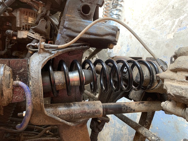 New spring installed, on a new rubber spring seat... that's sitting much better, and is wound from thicker wire so we shouldn't hit the bumps prematurely now, and when we do hit the bump it'll be a softer landing and a lot less harsh