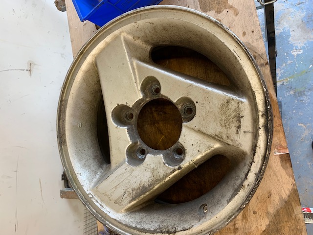 He'd taken the old tyre off the rim, so that I now have a set of four three spoke alloys for the lil'bugga build...