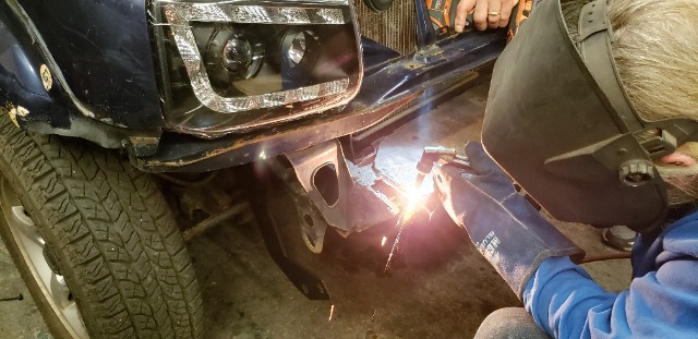 So the chassis ends had to come off in preparation for the cheap Chinese front bumper. Enter Dean with his gas axe.